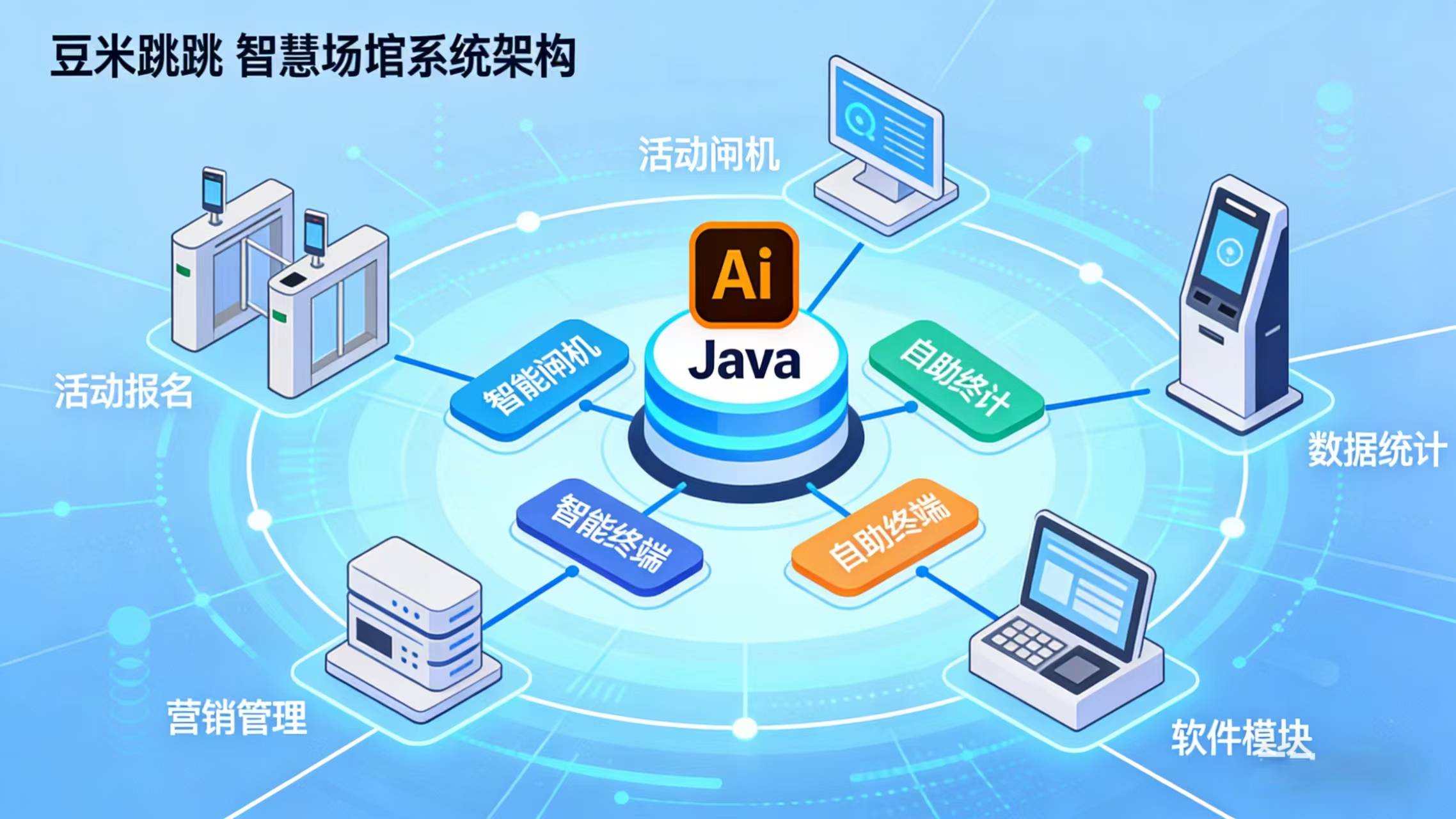 豆米跳跳聪慧场馆系统每个焦点功能模块都聚焦于特定场景,努力提拔场馆运营效率,降低运营成本。通过模块化设想和智能物联设备协同,系统可矫捷适配分歧业态需求,实现场馆从粗放办理到精细化运营的改变。还有更多使用功能等你来摸索!